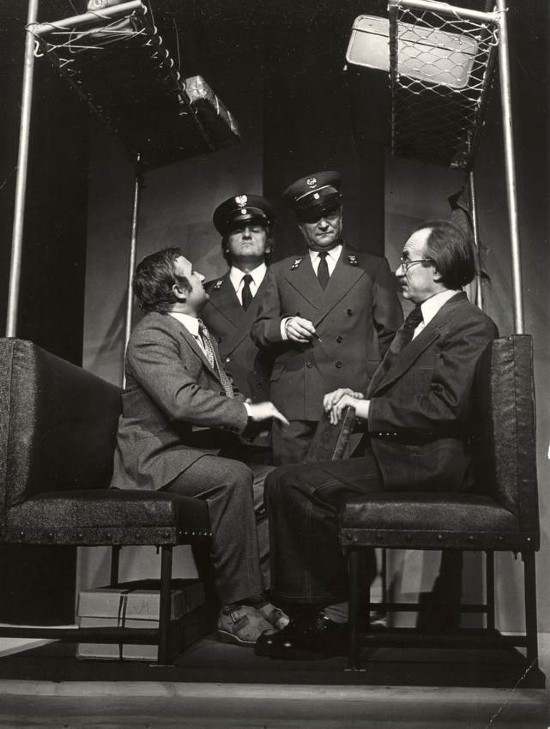 • Kazimierz Kaczor (Pan II), Józef Fryźlewicz (Celnik II), Marian Friedman (Celnik I), Wiesław Michnikowski (Ojciec)<br/> fot. Marek Holzman